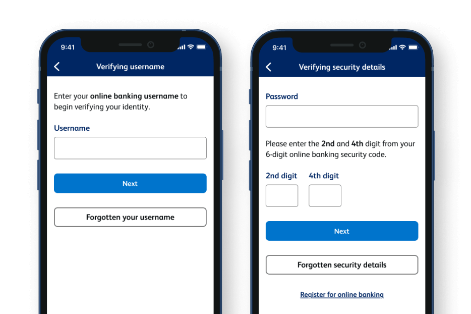 You can either do this in the app by tapping 'Register for online banking', or register for online banking on our website if you'd rather do it beforehand.